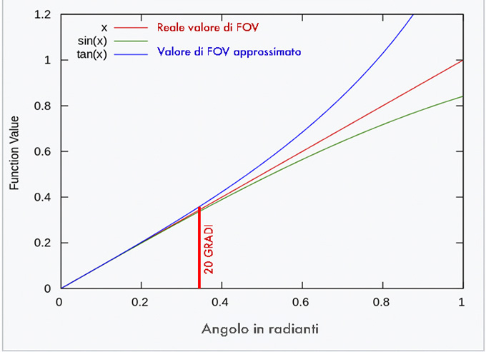 Se l’angolo di FOV è grande e non si può applicare l’approssimazione lo sviluppo della formula sarà il seguente: