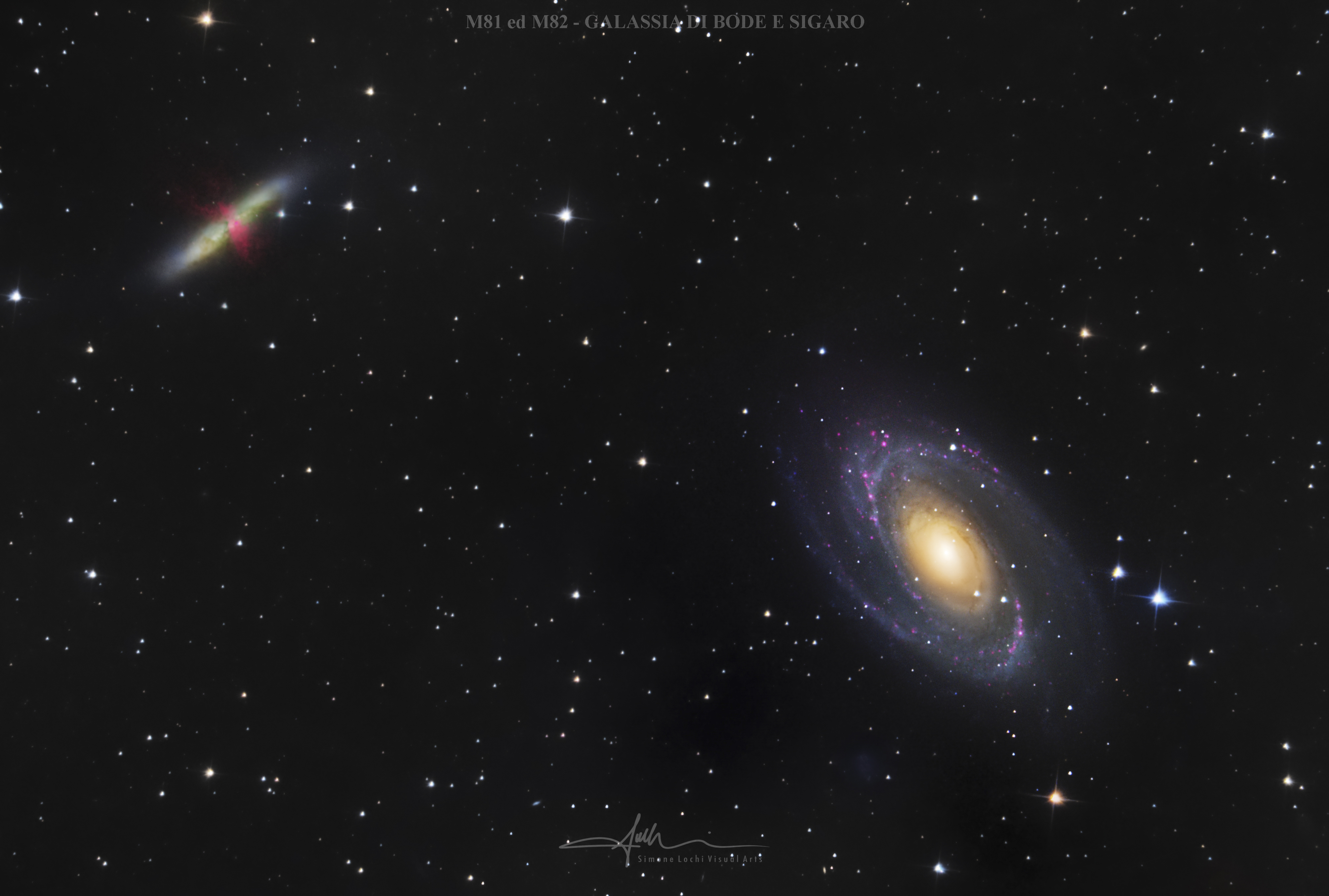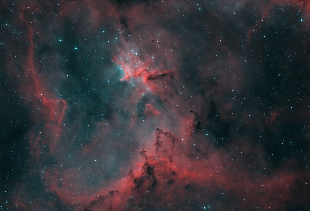 FASE 3: test sulle palette colori in photoshop. Il viraggio verso il giallo cerca di simulare una falsa SHO (palette di Hubble).